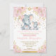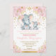 Cute Pink & Gold Elephant Girl Baby Shower Invitation