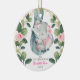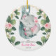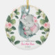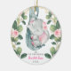 This adorable ceramic ornament features vibrant hot pink and blush roses, elegant greenery and a cute baby elephant.