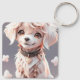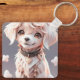 Cute Pink Golden Retriever Kids Custom Name Key Ring