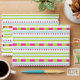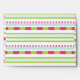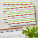 Colourful and girly striped pattern where you can also see a bit of chevron and dotted lines. This design is in green, white, mint blue and hot pink colour scheme.