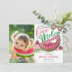 Cute Pink Green One In A Melon Birthday Photo Invitation