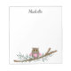 Cute Pink Heart Owl On Branch Personalised Name Notepad