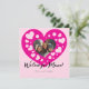 A square Mother's Day card with a pink photo frame in a heart shape and a lot of small hearts. Create a wonderful personalised card for any mother.