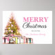 Cute Pink Holiday Tree Merry Christmas Party Poster