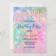 Chic pink rainbow unicorn birthday party invitation for any age with cool glitter dripping design. To make it extra special you will personalise it with your own information with beautiful monogram fonts.