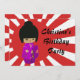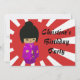 Cute Pink Kawaii Kokeshi Doll on rising sun Invitation
