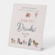 Cute Colourful Pink Kids Boy Birthday Party Favour Sign, 'Paw-ty Drinks, Please take one'; featuring hand drawn dogs. Original artwork by Caroline Bonne Müller