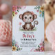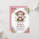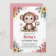 Cute Pink Kids Monkey 1st Birthday Party Invitation