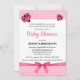 © 2012 Socialite Designs. Pink with black polka-dots ladybug and ribbon design baby shower invitation. A charming invite to send to guests to celebrate the upcoming birth of a baby girl. PLEASE NOTE THAT THE RIBBON IS NOT REAL BUT A GRAPHIC RENDITION OF A RIBBON AND BOW.