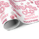 Adorable kids birthday wrapping paper features pink number 5 balloon, alphabet letter balloon, star balloon and party balloon. With greeting text "Happy birthday" and the kid's name. Both can be customised.