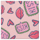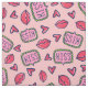 Cute Pink Lips Kisses & Hearts Doodle Patterned Fabric