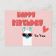 Cute pink Llama in glasses birthday Postcard