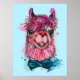 This design features a cute watercolor portrait of a llama in watercolor splashes of pink and blue.