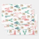 Cute Pink Llama's and Green Cactus Wrapping Paper Sheet