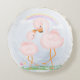 CUTE PINK MAMA AND BABY FLAMINGOS ROUND CUSHION