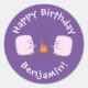 Cute pink marshmallows by camp fire cartoon classic round sticker