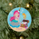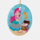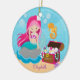 Personalise Dated Cute pink mermaid personalised Christmas Ornament set on a blue water bubble background with a treasure chest & seahorse. Visit our shop to view this adorable mermaid in a variety of hair & clothing colours.