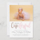 Celebrate your little one's first birthday with these cute photo birthday invitations. Featuring "onederful" in a modern script in faux rose gold and pastel pink. Easily customise our default photo template with one of your daughter! Your party details appear in a simple, sans-serif typography with a sweet script font for your daughter's name. On the reverse, there is a polka dot pattern in white against pink.