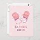 Cute Pink Mittens Together Forever Love Pun Postcard