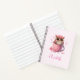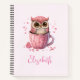 A personalised spiral notebook with an adorable image of an owl sitting in a coffee mug.