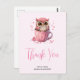 Thank you postcard, with an adorable image of an owl sitting in a coffee mug.