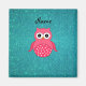 Cute pink owl with white polka dots and turquoise/aqua glitter personalised with your name gifts or monogram gifts or your initials