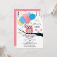 Cute Pink Owl with Balloons & Confetti Baby Shower Invitation