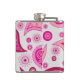 The flask itself is fine. It’s a cheap flask, obviously bought in bulk, however am prepared to overlook that. Given that it is a personalized item, I would have liked to have seen gift boxing instead of the generic packaging. Terrible printing, and/or quality. It’s a cheap, tacky vinyl. It is not cut straight and is also applied in a way that it is overhanging the bottom, causing the glue to catch on items and it will eventually roll and tear, damaging the wrap.