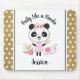 A cute personalized girly panda decorates this mouse pad with the words "Party Like a Panda," and personalized with the name of your choice.borders are decorated with a gold and white polka dot pattern. Cute gift for a tween girl. Designed for you by Blackberry Boulevard.