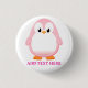 A cute pink penguin drawing. Baby animal buttons. Edit text to customise. Gift idea for kids.