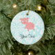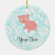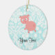 Cute Pink Pig; Teal Damask Ceramic Tree Decoration