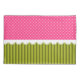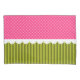 Cute and girly pink polka dot pattern and green stripes with graphic lace design in the middle.