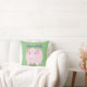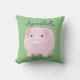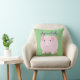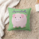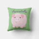 This cute pink mini pig is drawn in fun cartoon illustration style on a green background. Farmyard fun!