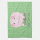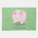 Cute pink pot bellied pig cartoon illustration tea towel