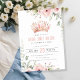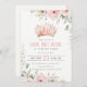 Cute Pink Princess Crown Tiara Floral Birthday Invitation