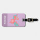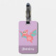 Cute Pink Pterodactyl dinosaur Girls Purple Luggage Tag