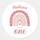 Cute Pink Rainbow Boho First Birthday Classic Round Sticker