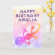 Cute Pink Rainbow Lizard Gecko Happy Birthday Card. This happy birthday greeting card for kids comes with a cute rainbow-coloured gecko lizard on a colourful background. Add your text on the front and inside the card or erase it.