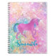 Make back to school fun with this Cute personalised Notebook. It is designed with elegant girly iridescent glitter drips in unicorn rainbow pink colours design.