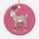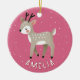 Cute Pink Reindeer Kid`s Name Christmas Ceramic Ornament. Cute deer on a pink background with white snowflakes. The ornament has a name template - personalize it with your name.