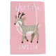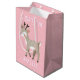 Cute Pink Reindeer Kid`s Name Christmas Medium Gift Bag