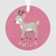 Cute Pink Reindeer Kid`s Name Christmas Ornament