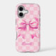 This adorable pink pattern features pretty watercolor bows scattered across a soft pastel gingham background. The design has a cute, girly, and kawaii aesthetic that blends vintage charm with modern pastel style.