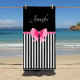 Personalized Cute Pink Ribbon Black & White Striped Beach Towel.