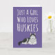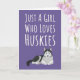 Celebrate your young animal lover with this adorable pink Husky card featuring the sweet quote: **"Just A Girl Who Loves Huskies."** This themed, unique design is the perfect gift for any young dog enthusiast, blending Siberian Husky charm with a girly aesthetic that every baby girl, kid, and pet lover will adore.