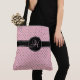 Cute Pink Silver Glitter Polka Dot Monogrammed Large Tote Bag,