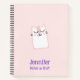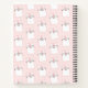 A spiral notebook with an illustration of a cute sleeping kitty cat. Eyes closed looking happy and peaceful. Set on a pale pink background. Customise with a name. The back has the same image in pattern format.