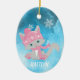 Cute Pink Snowflake Kitten Ceramic Ornament