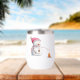 Cute water bottle with an illustration of a Snowman with a pink hat and scarf roasting marshmallows. Great gift for the upcoming holidays. Personalise the text with your own message. Illustrated and designed by Patricia Alvarez.