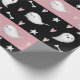 Cute Pink Striped Ghosts Hearts & Bones Kid's Bday Wrapping Paper